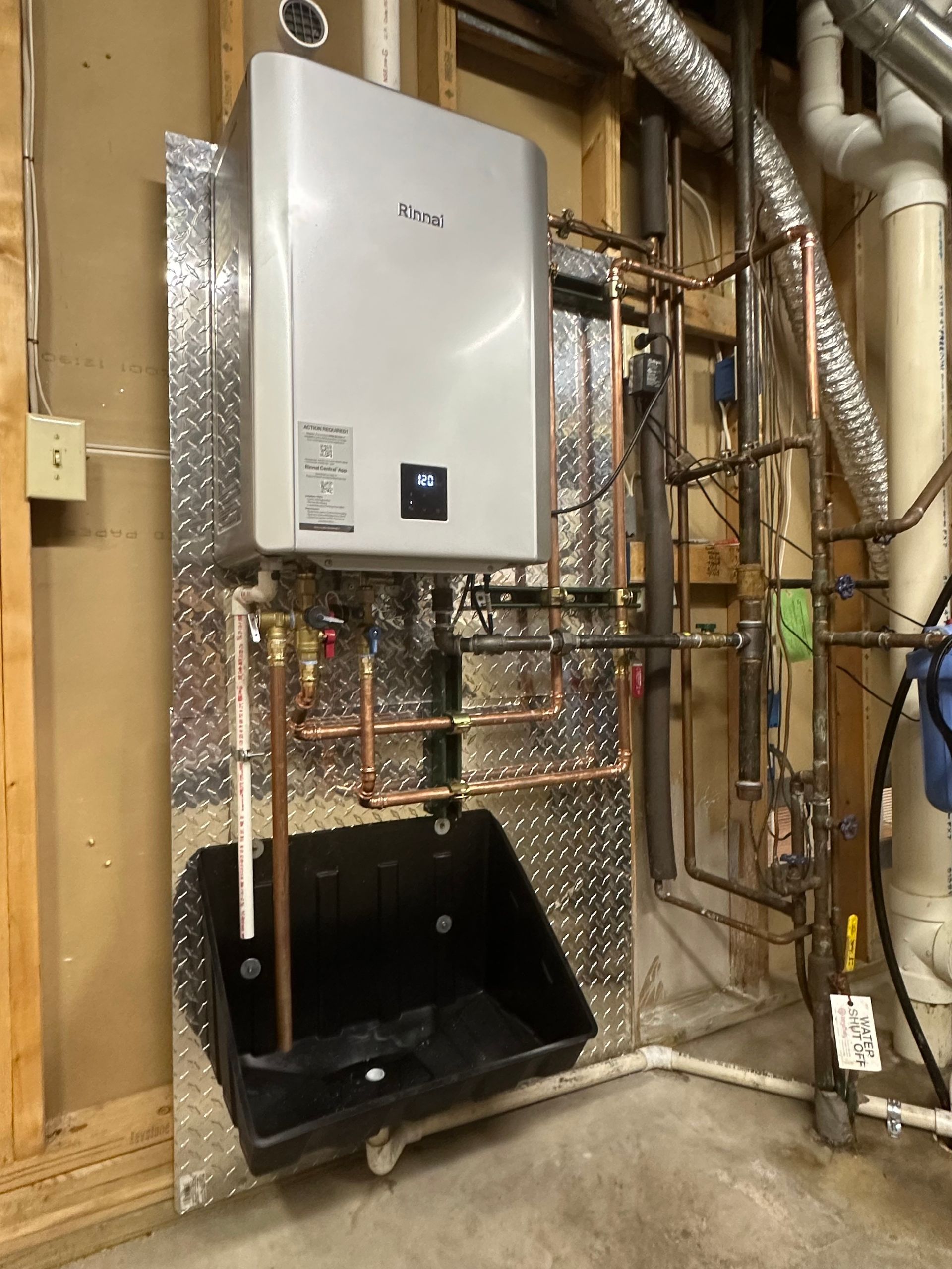 Are you tired of running out of hot water? Are you tired of waiting on your water to heat up after four family members have showered? Or maybe you’re just tired of having a tank full of hot water heating and reheating itself. If any of those scenarios apply to you- a tankless water heater may be your answer. Tankless water heaters are exceptionally efficient, they require less space for installation (generally), and can be used with recirculating systems to not only provide you with endless hot water, but also instant hot water. I provide and install Rinnai tankless units. Tankless water heaters are most suitable for natural gas and propane fueled homes and I do not normally recommend electric tankless units for a whole home installation. They are not as efficient and can require extreme electrical supply upgrades. They may however be used to provide hot water in certain instances. Tankless water heaters are definitely an investment, but the energy efficiency and ability to always have hot water are huge benefits. They also last longer than most tank type water heaters. Although a tank type water heater can have an extended life via changing anode rods and removing sediment built up inside the water heater, a tankless unit is easier to maintain and clean (this should be done yearly by a trained professional). And the results last longer.